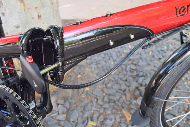 A Tern reserva as cores mate para as de alta gama, mas estes tons envernizados também têm muitos adeptos. O vermelho fica sempre bem com o preto e dá um ar premium.
