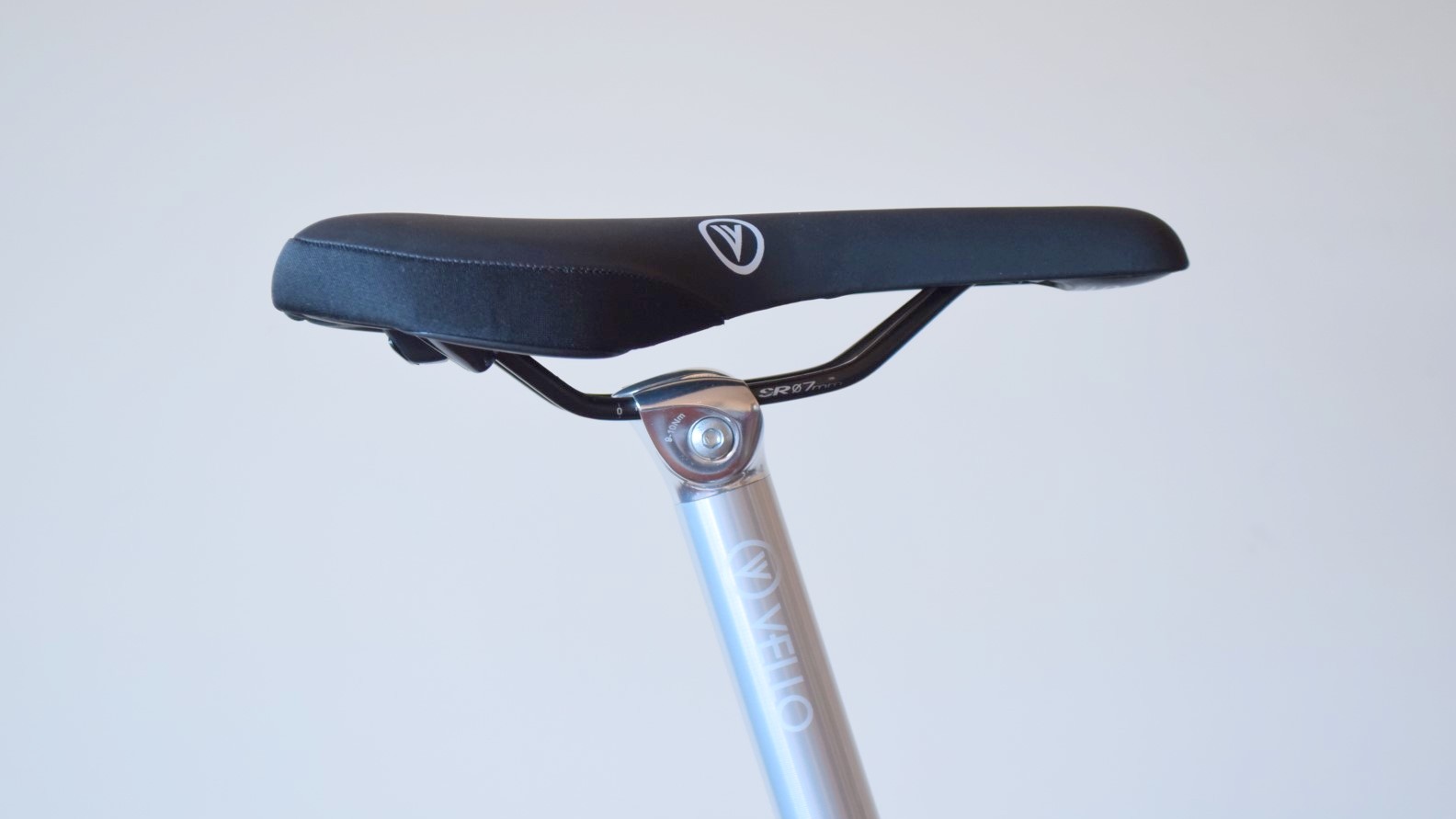 E para fechar um selim Selle Royal feito para a Vello. É compatível com os acessórios da marca como bolsas de selim