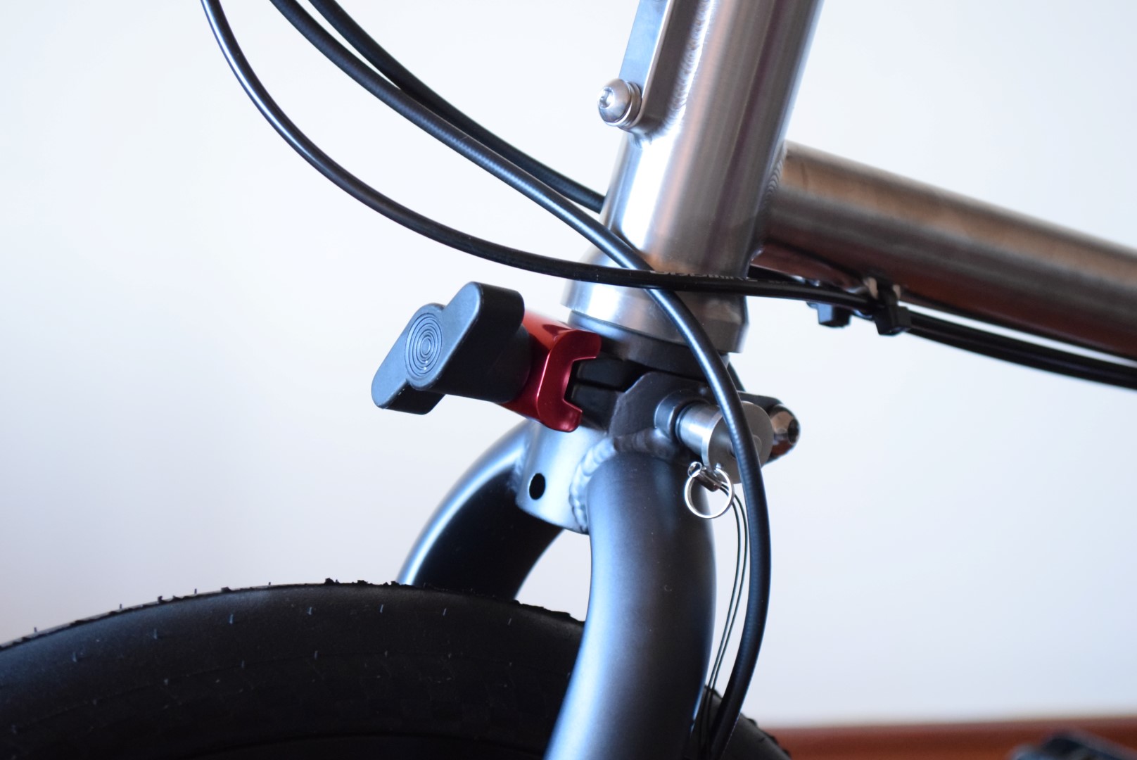 O luggage socket para cargas à frente sem afectar a direcção. A predefinição é Klickfix, mas com o adaptador Vello dá também para Brompton