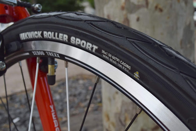 Os pneus de origem da Kenda, são especiais e com pressão até 100psi. Os aros da roda são de parede dupla, mais resistentes a empenos.